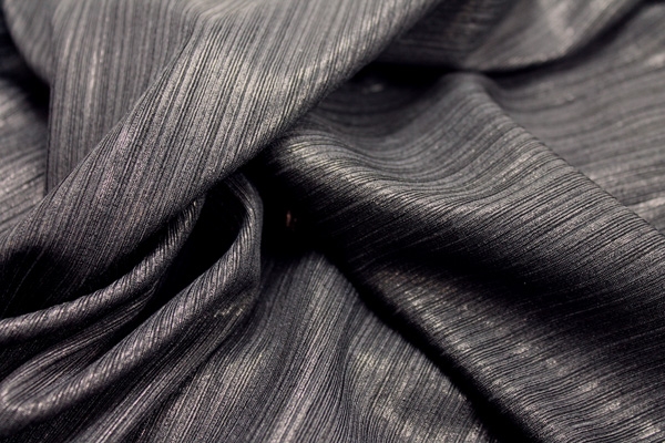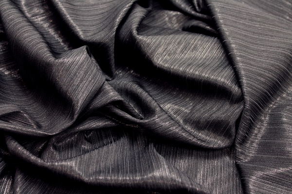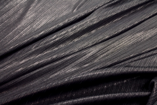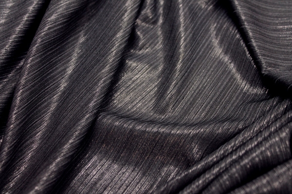 This is a slinky viscose jersey in black, in a rib effect with a metallic finish. It has great drape.