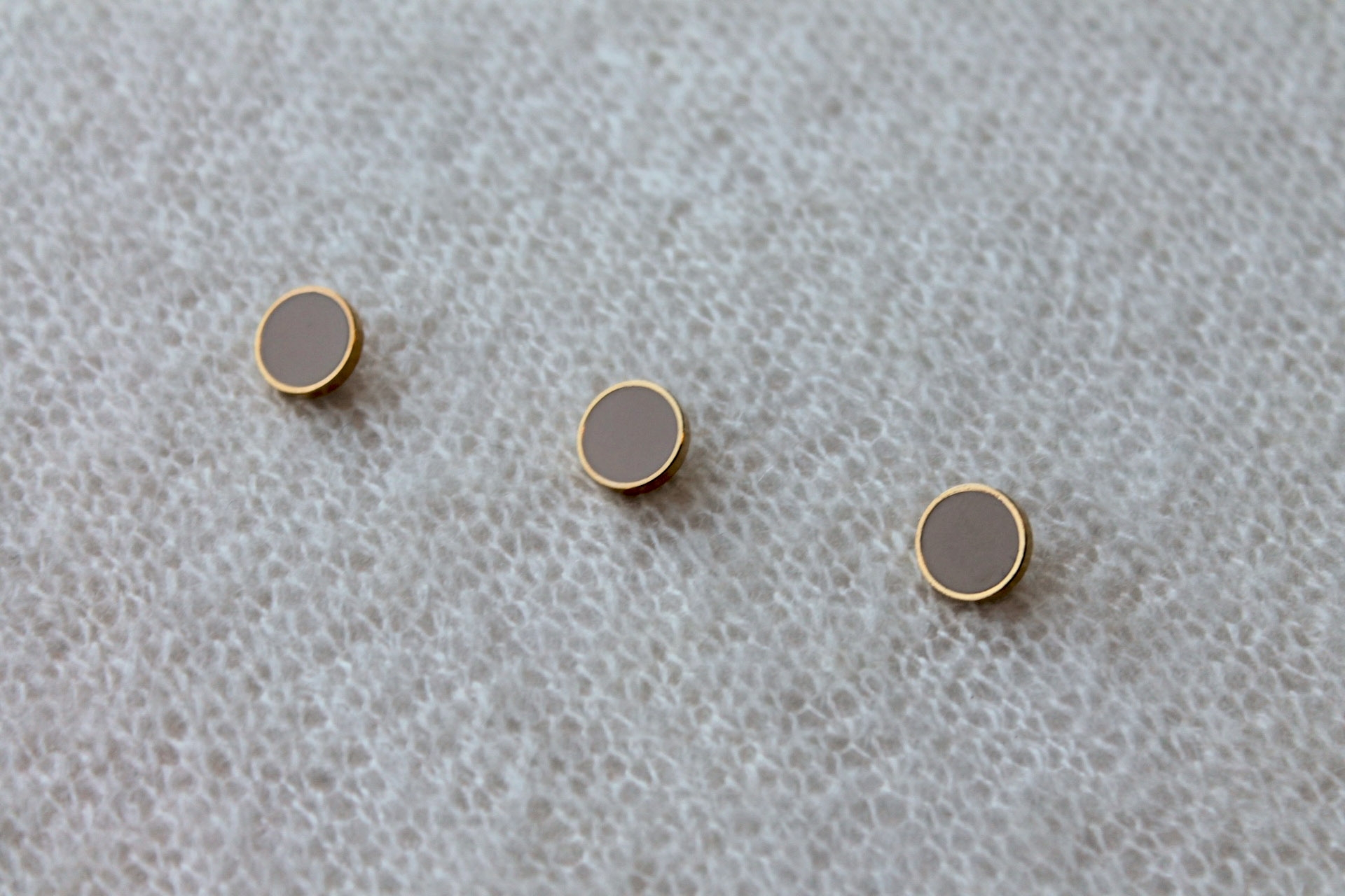 This is a vintage style shank button in gold metal with a blush pink glass inlay. Measures about 1cm across.