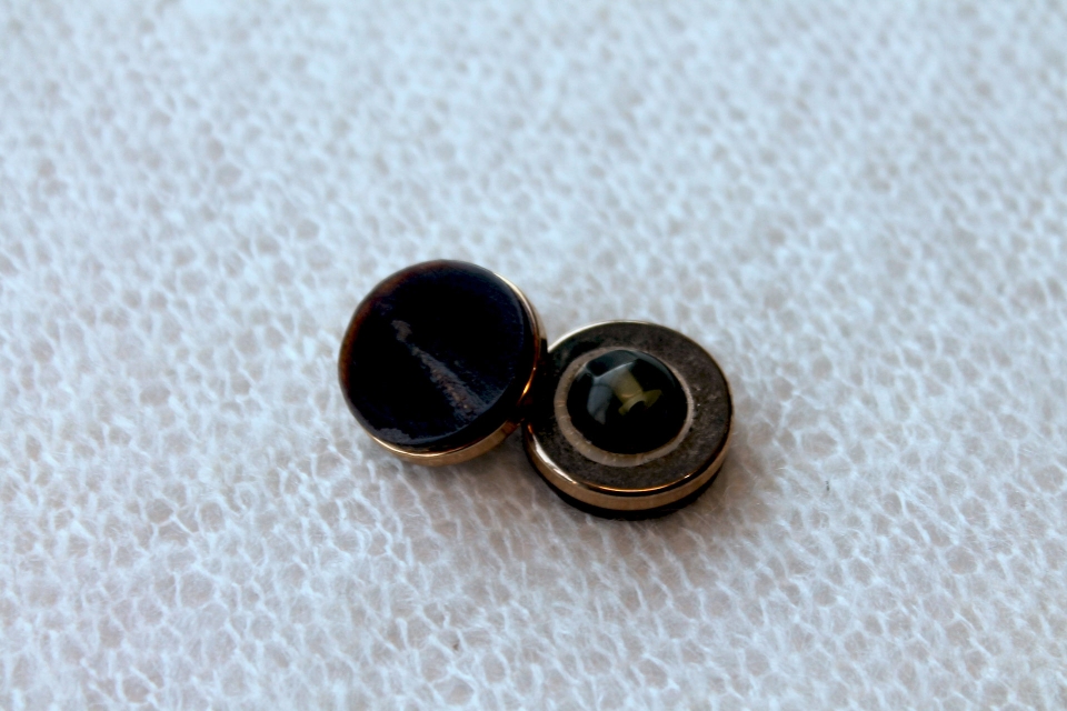 | Composition | Metal shank, glass inlay |