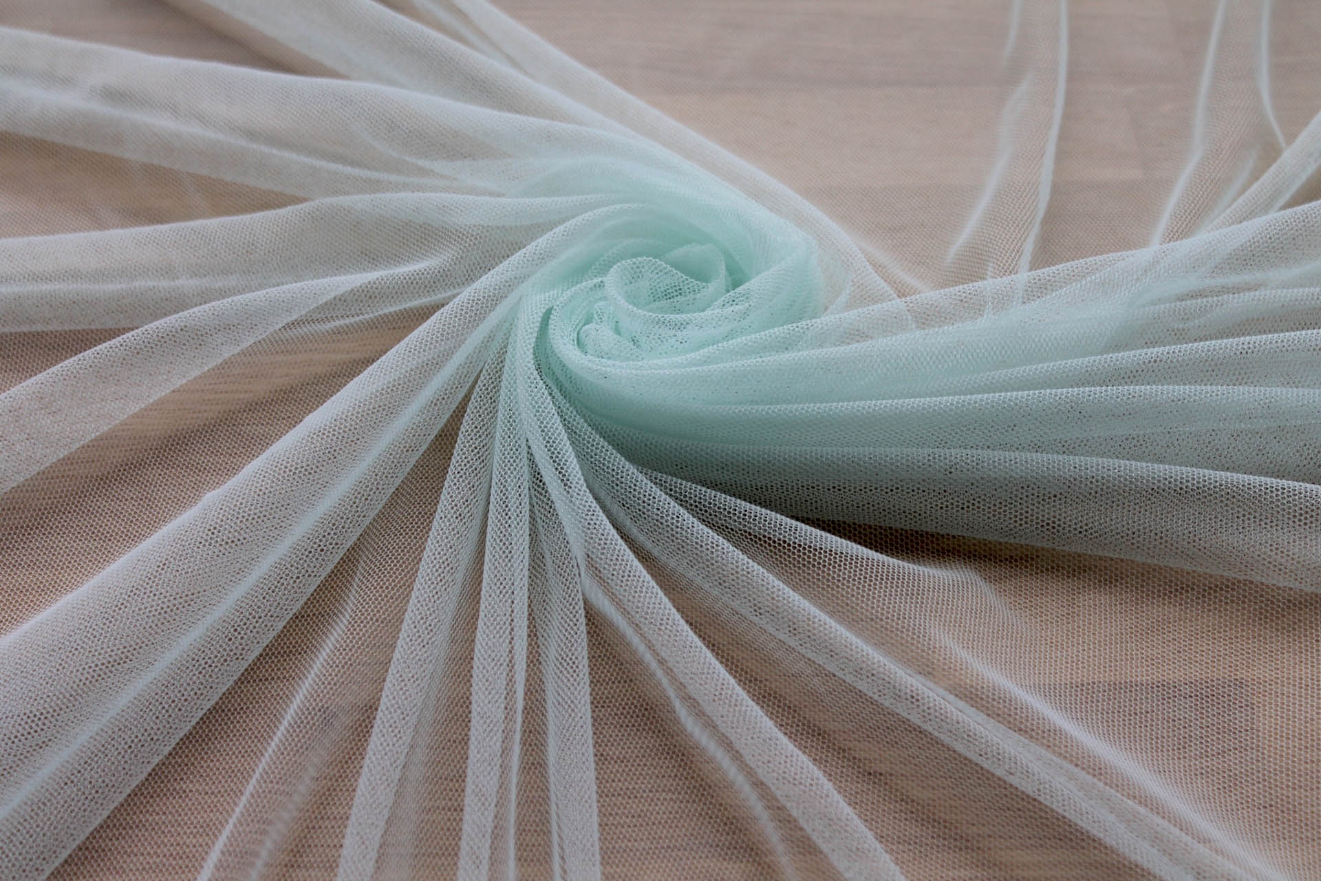 This nylon tulle is very soft and drapes beautifully, great for overlaying on dresses. Mint in colour.