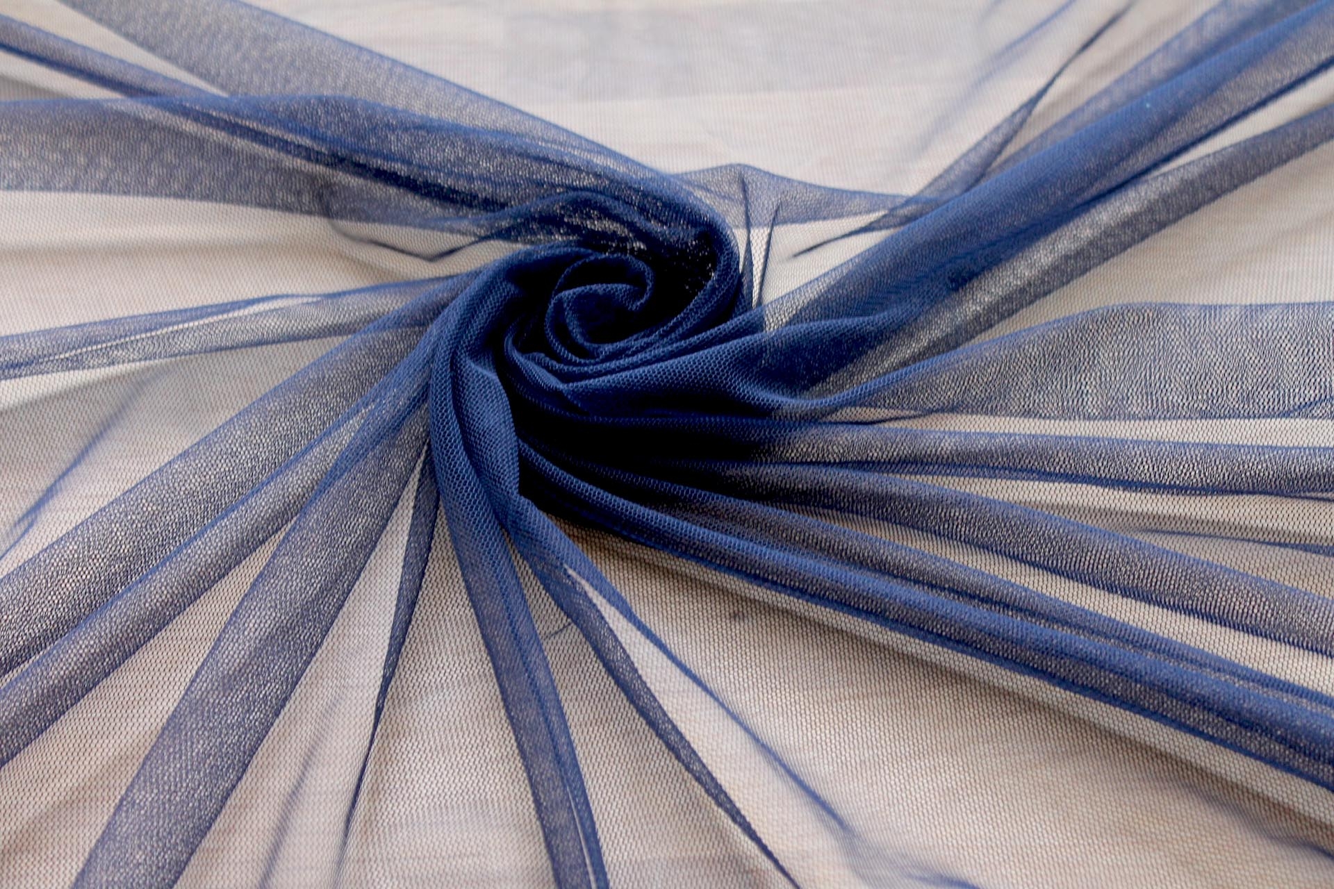 This nylon tulle is very soft and drapes beautifully, great for overlaying on dresses. This one is navy blue in colour, 130-140cm wide.