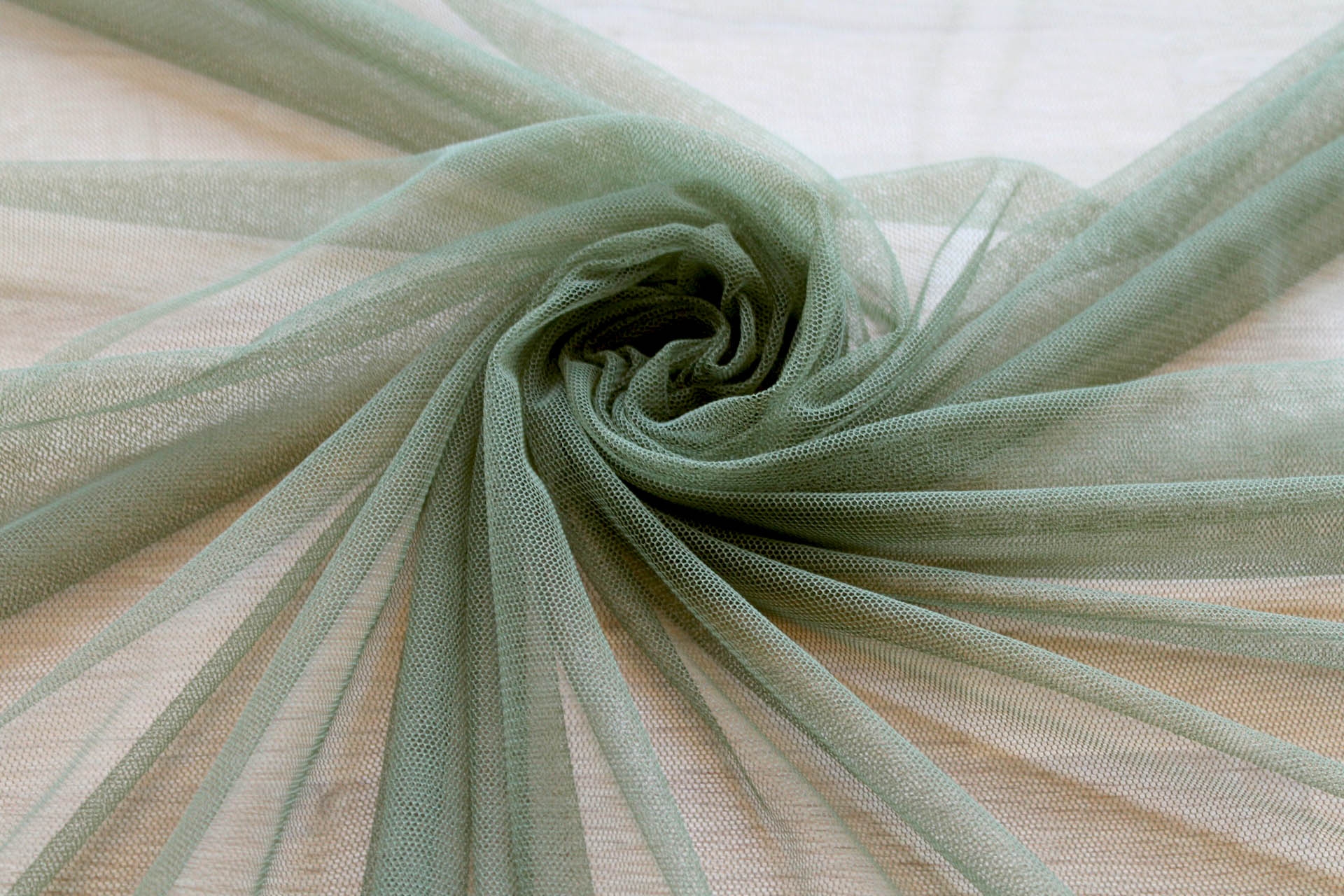 This nylon tulle is very soft and drapes beautifully, great for overlaying on dresses. Olive green.