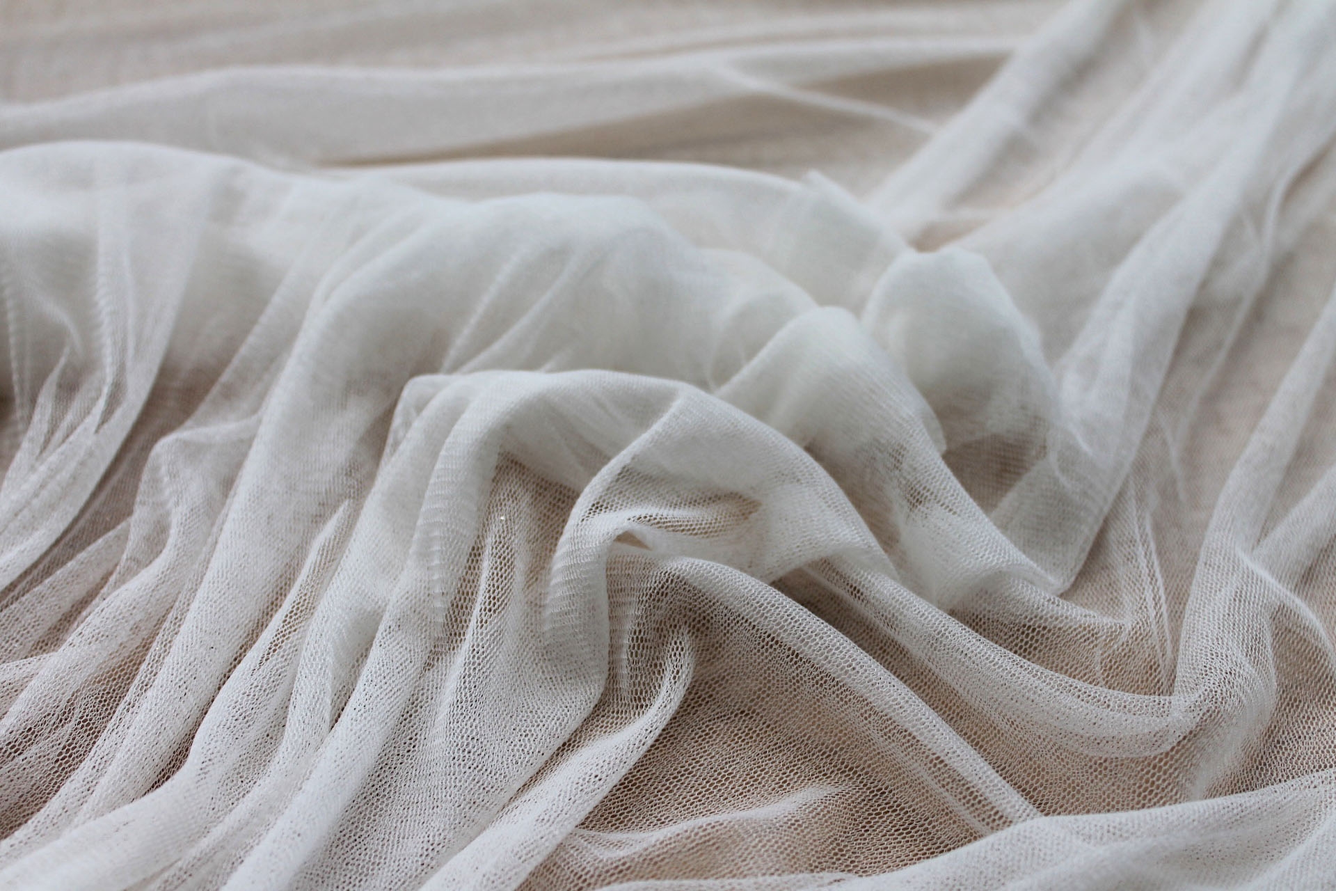 A super soft French silk tulle in pale ivory. 100% silk. Also available in deep ivory.