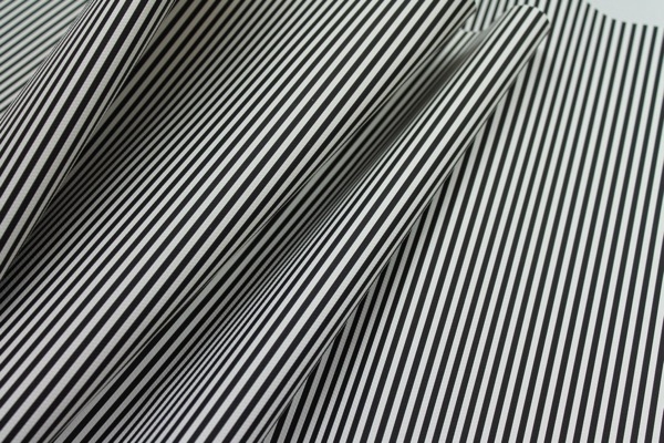 A European made soft leatherette in black and ivory stripes, from selvedge to selvedge. A nice soft quality.