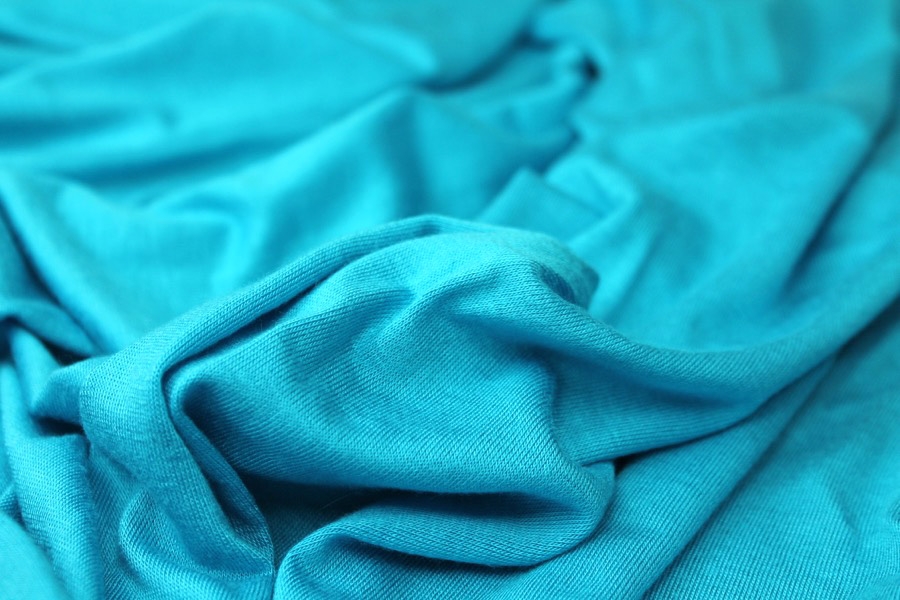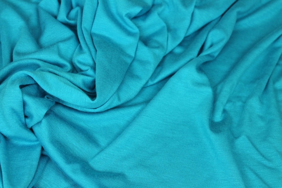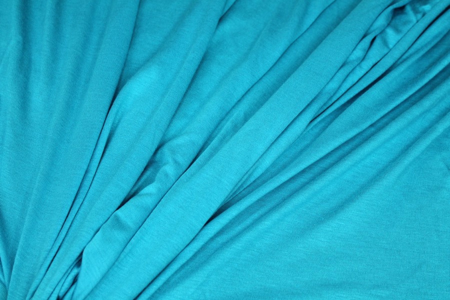 This is a soft Italian viscose jersey in bright turquoise, which feels like a lux cotton jersey.