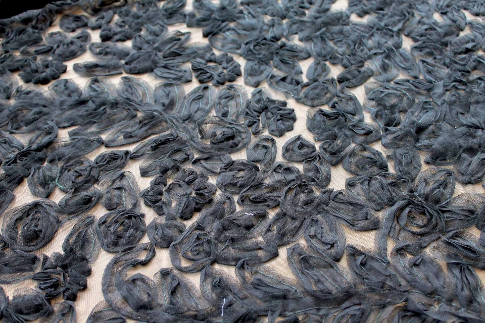 REMNANT - Cotton and Lurex "Leaf" Applique in Tulle - Grey / Gold - 0.85m PieceSpecial Price £30.00 Regular Price £63.75 -