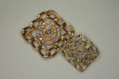 Square Metal Gold Chain Button with AB Rhinestones - Large