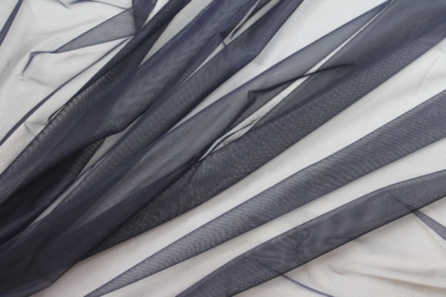 This is a stretch tulle, a sheer bodystocking mesh, great for dresses or costumes where transparency and give is needed. Navy in colour, also available in other colours.