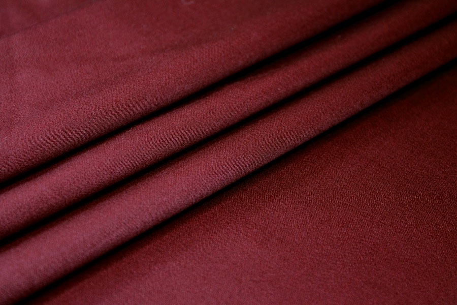 A high quality Italian stretch wool venetian suiting in burgundy, one side is matte and the other shiny. 99% virgin wool 1% elastane.