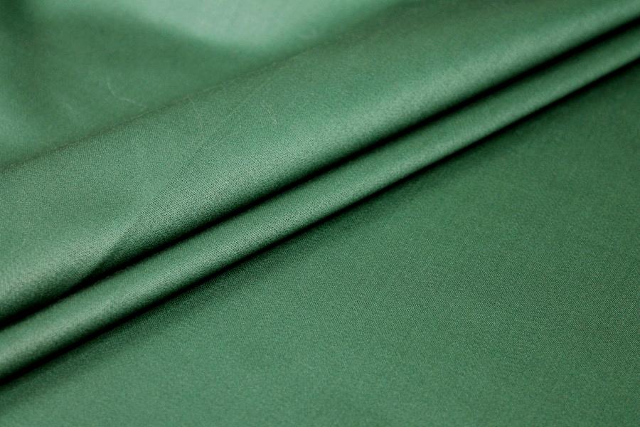 A high quality Italian stretch wool venetian suiting in forest green, one side is matte and the other shiny. 99% virgin wool 1% elastane.