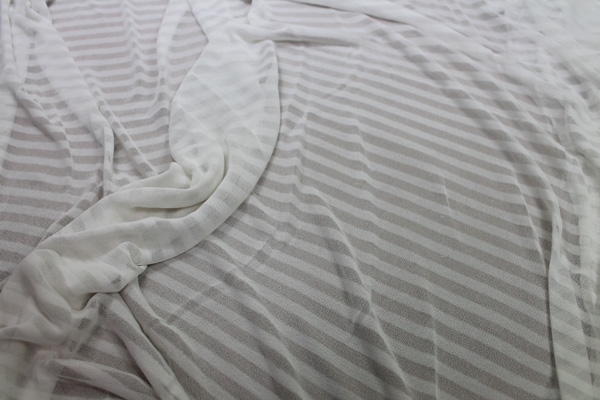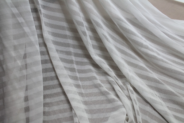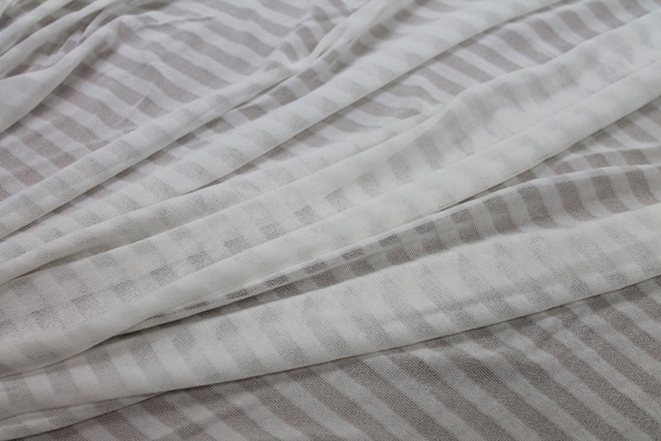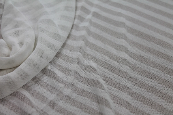 This is a striped, almost sheer jersey made from 100% viscose with great drape, in white.