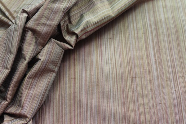 Woven in stripes measuring only a few millimetres, in brown with stripes in shades of brown and rust, 100% silk. 112 cm wide.