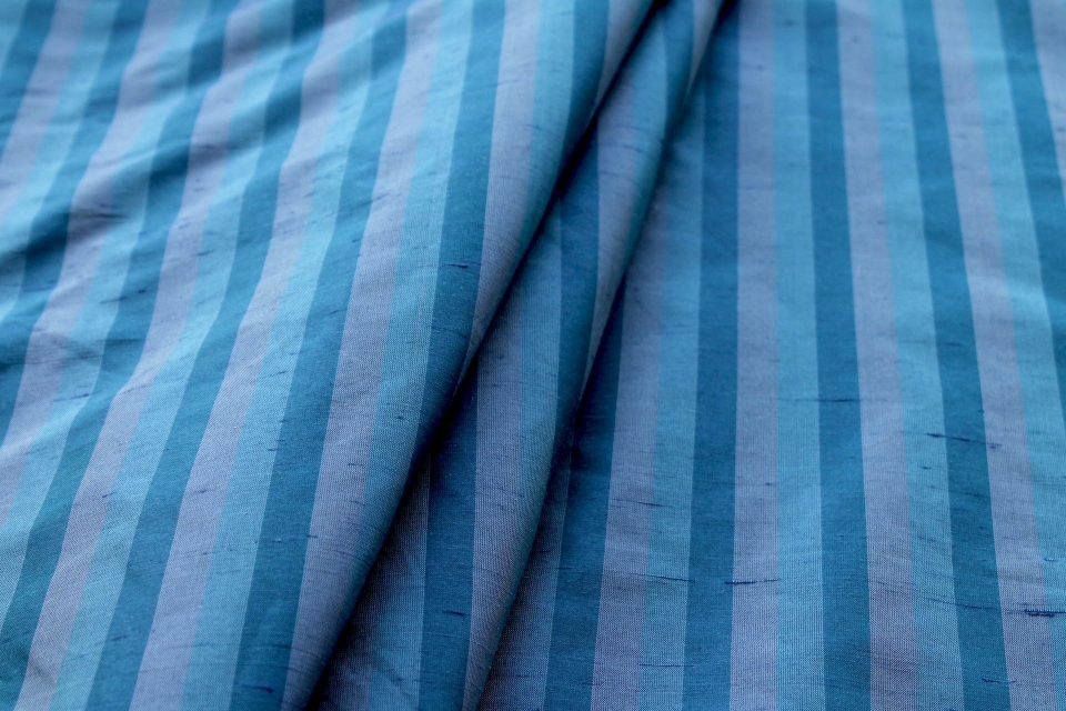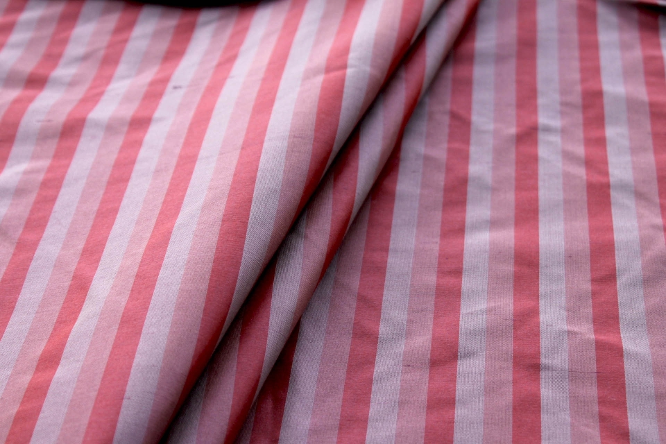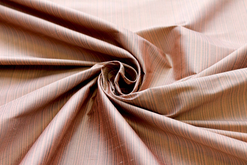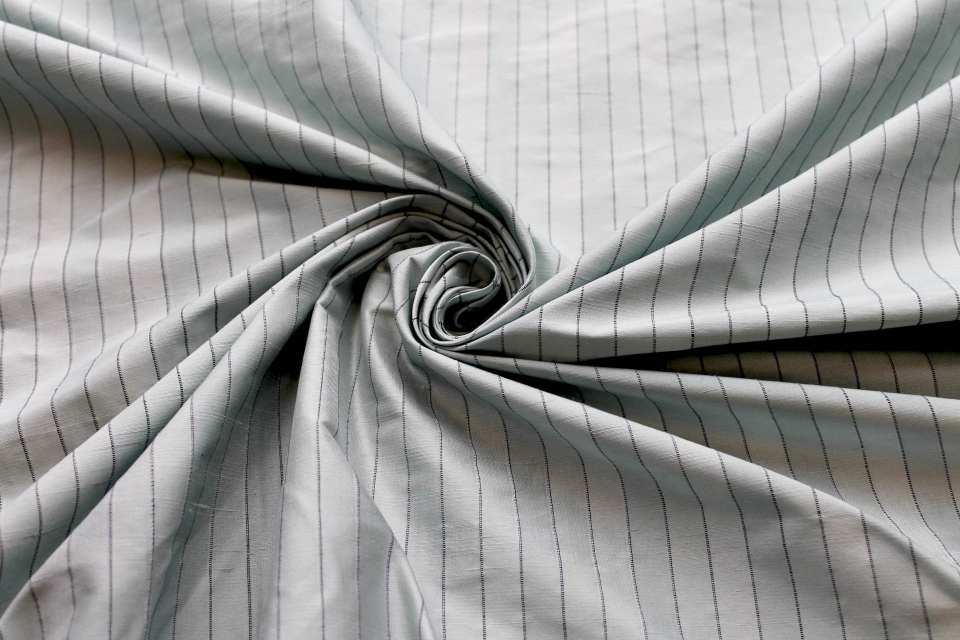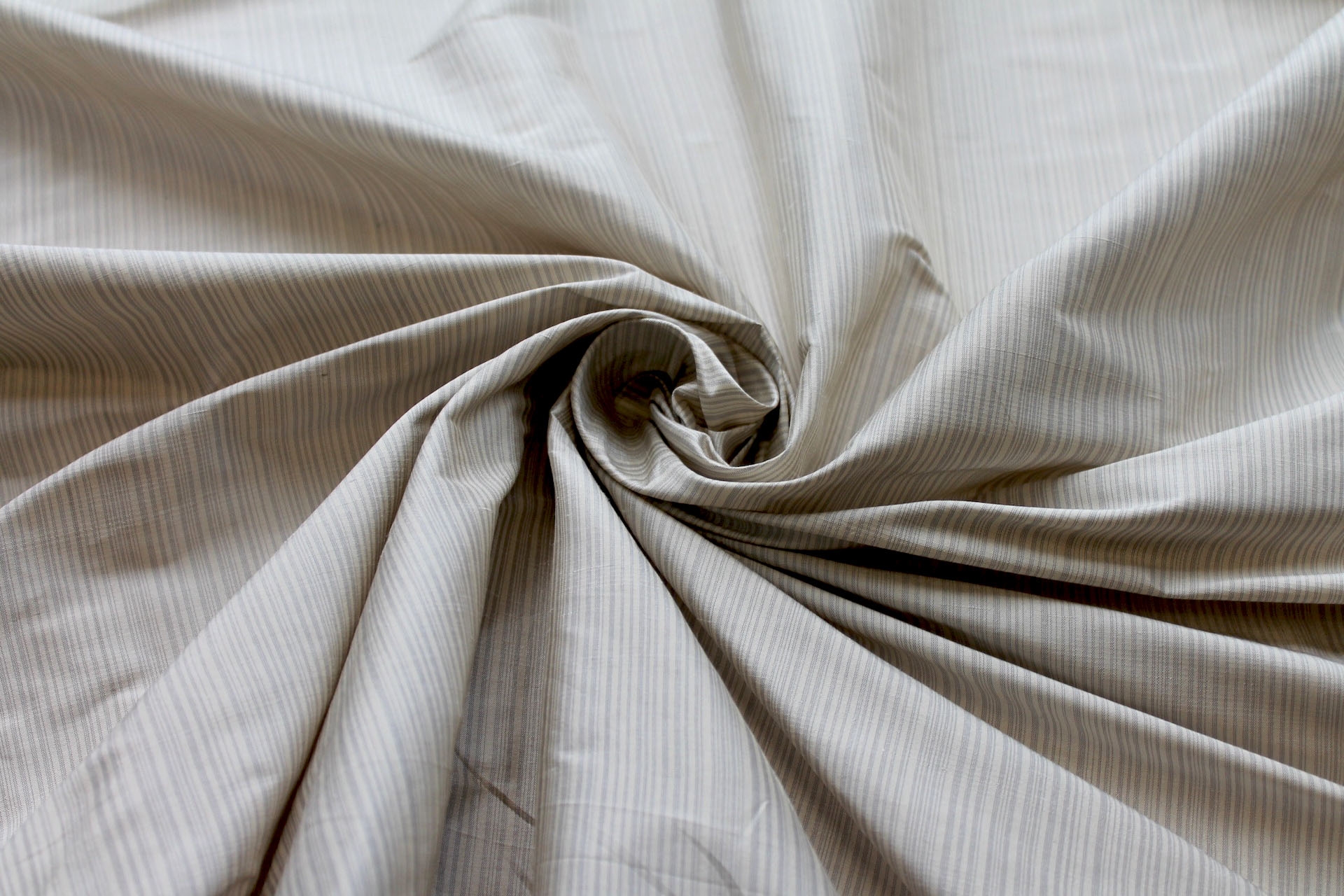 A beautifully structured cloth, woven with a Chinese yarn to give a smoother finish. Woven in stripes measuring only a few millimetres, in ivory and grey, 100% silk.