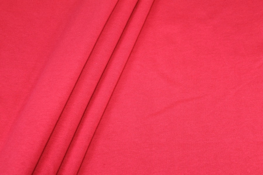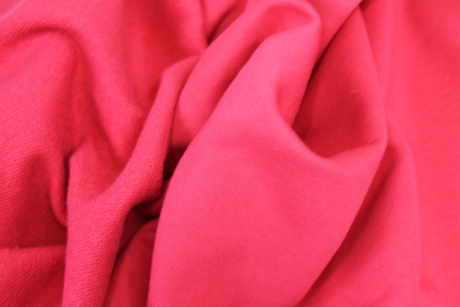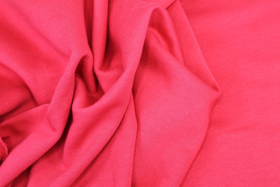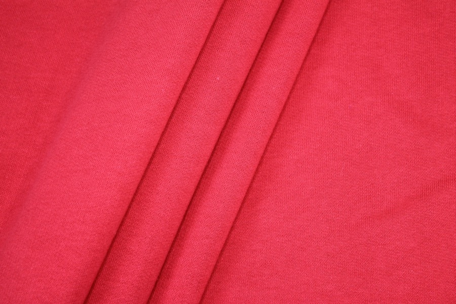 This is a double sided sweatshirt jersey in red with a loop-backed inside. This fabric is 2m wide and comes tubular.