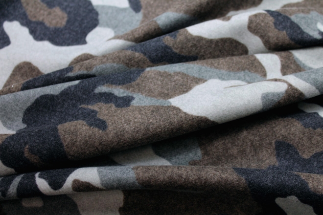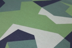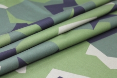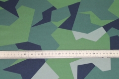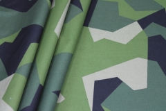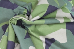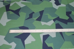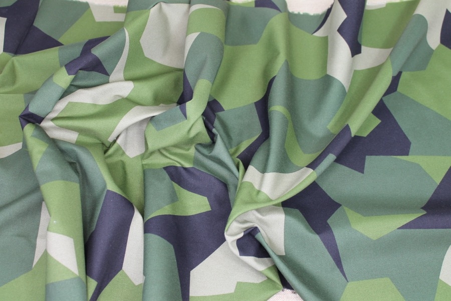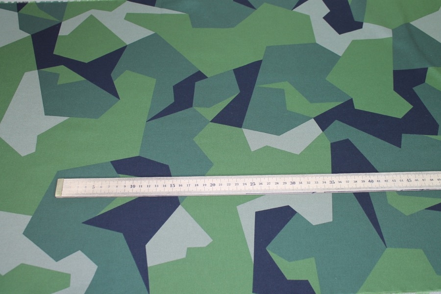 This is a fine 100% cotton with a stylistic camouflage print in greens, called M90, the pattern used in the Swedish army.