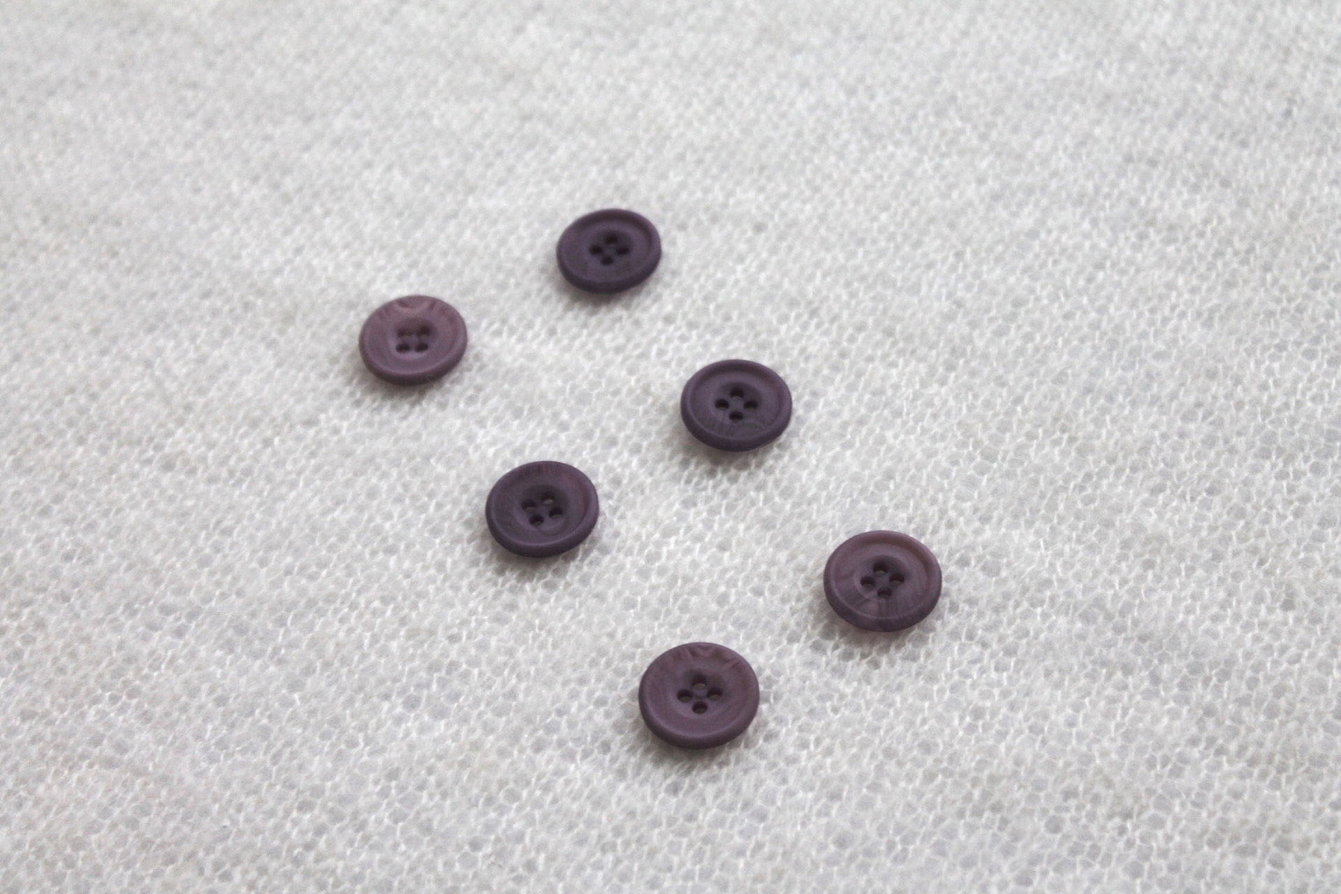 This is a vintage nylon button in violet, with four holes, it measures approx 2cm across.