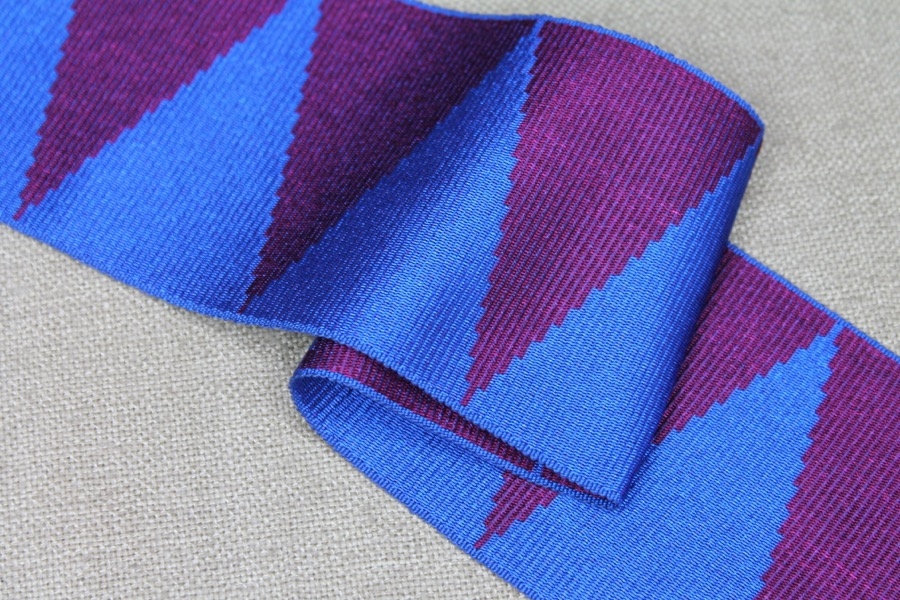 This is a wide mixed fibre grosgrain ribbon, in royal blue and burgundy in a triangle pattern, 11cm wide. Only available in this colour.