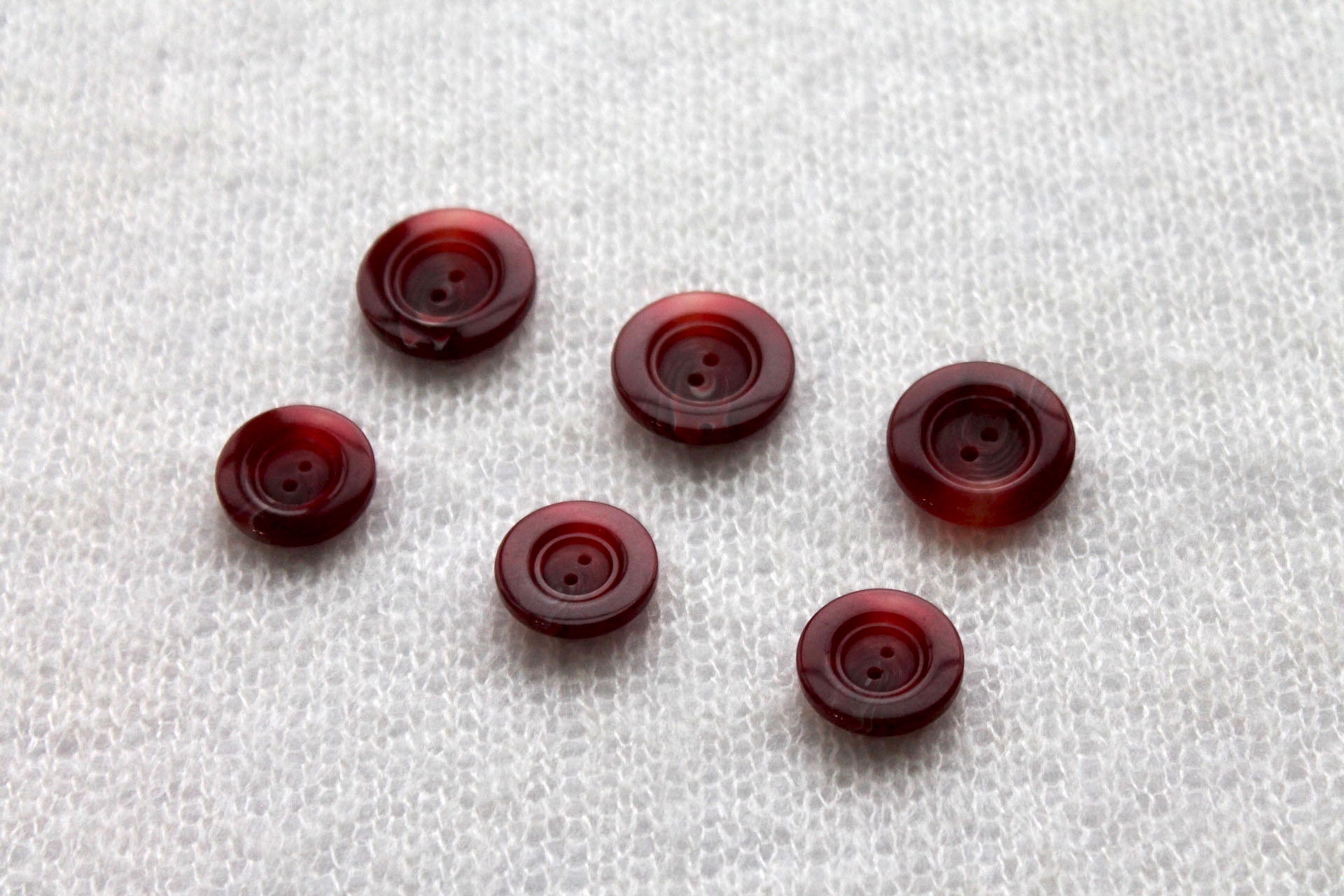 This is a vintage nylon button in wine red, with two holes, it measures approx 2.2cm across.