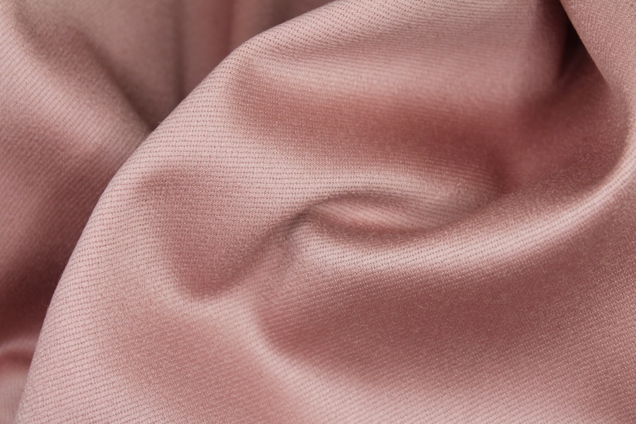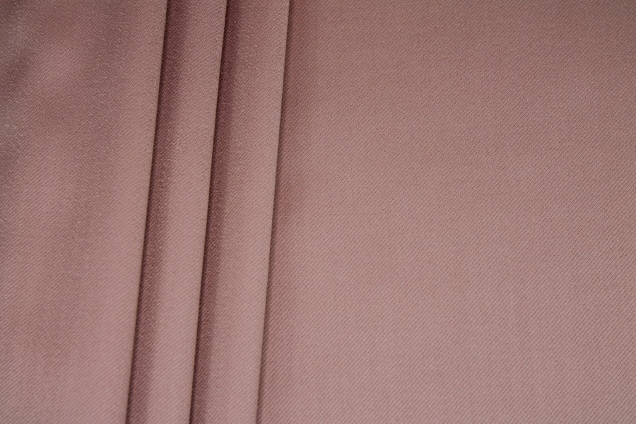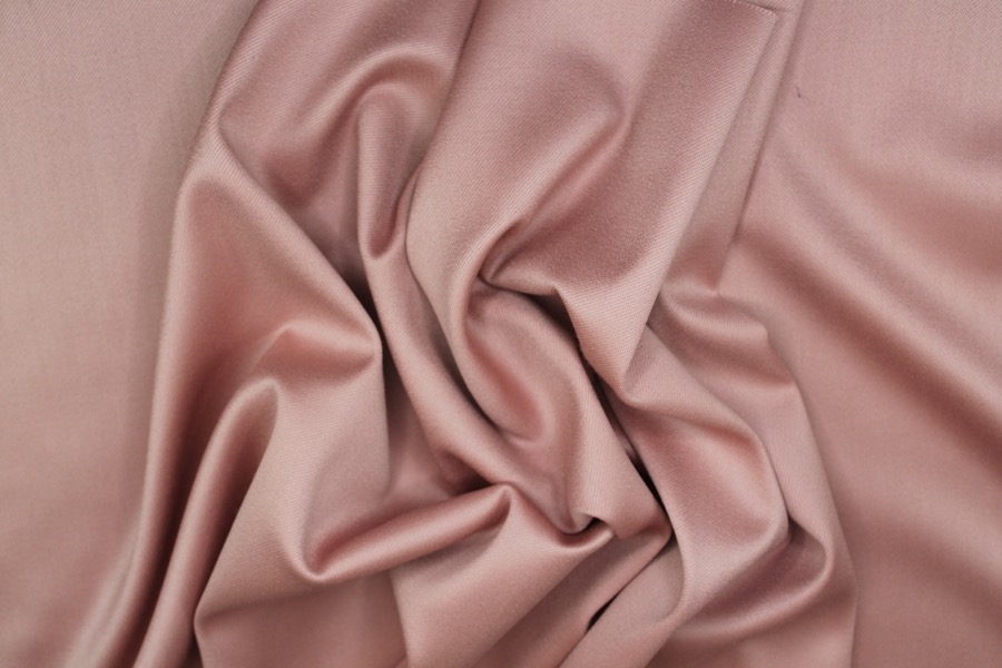 This is a luxurious Italian wool satin weave, a heavy Venetian suiting in dusty pink, one side is matte and the other shiny. The fabric is woven with the matter side as the face, however many opt to use the shinier satin side as the face side. 100% wool.