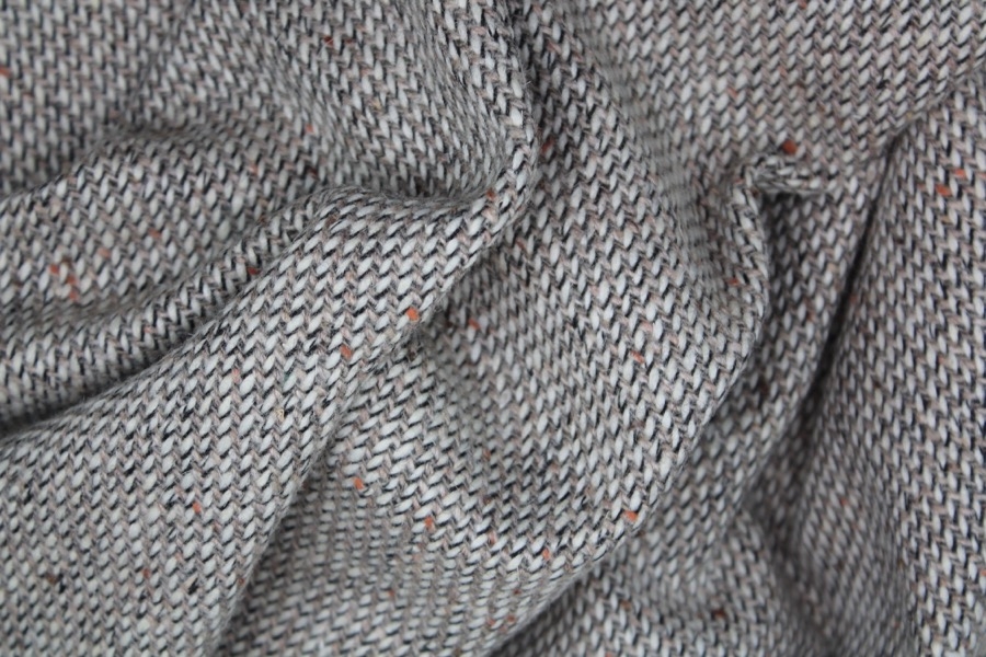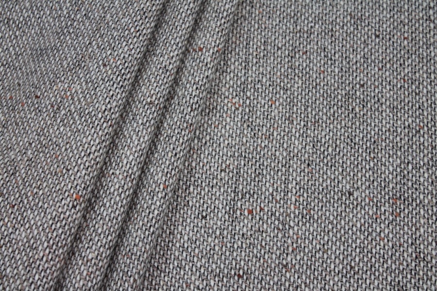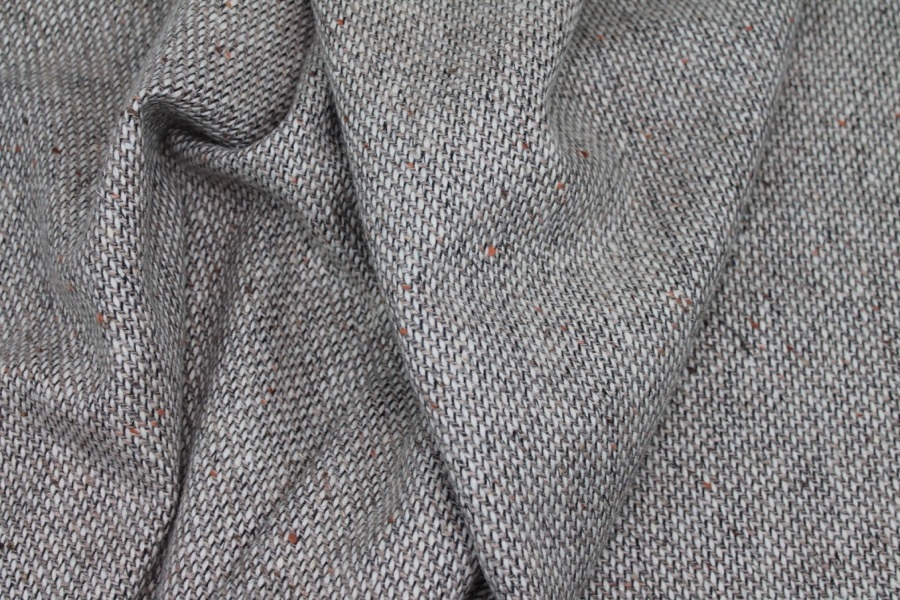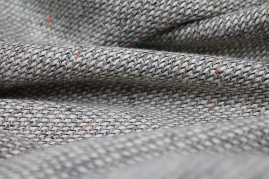 A high quality wool, woven with threads of ivory, sandy beige and black, with flecks of rust in the weave.