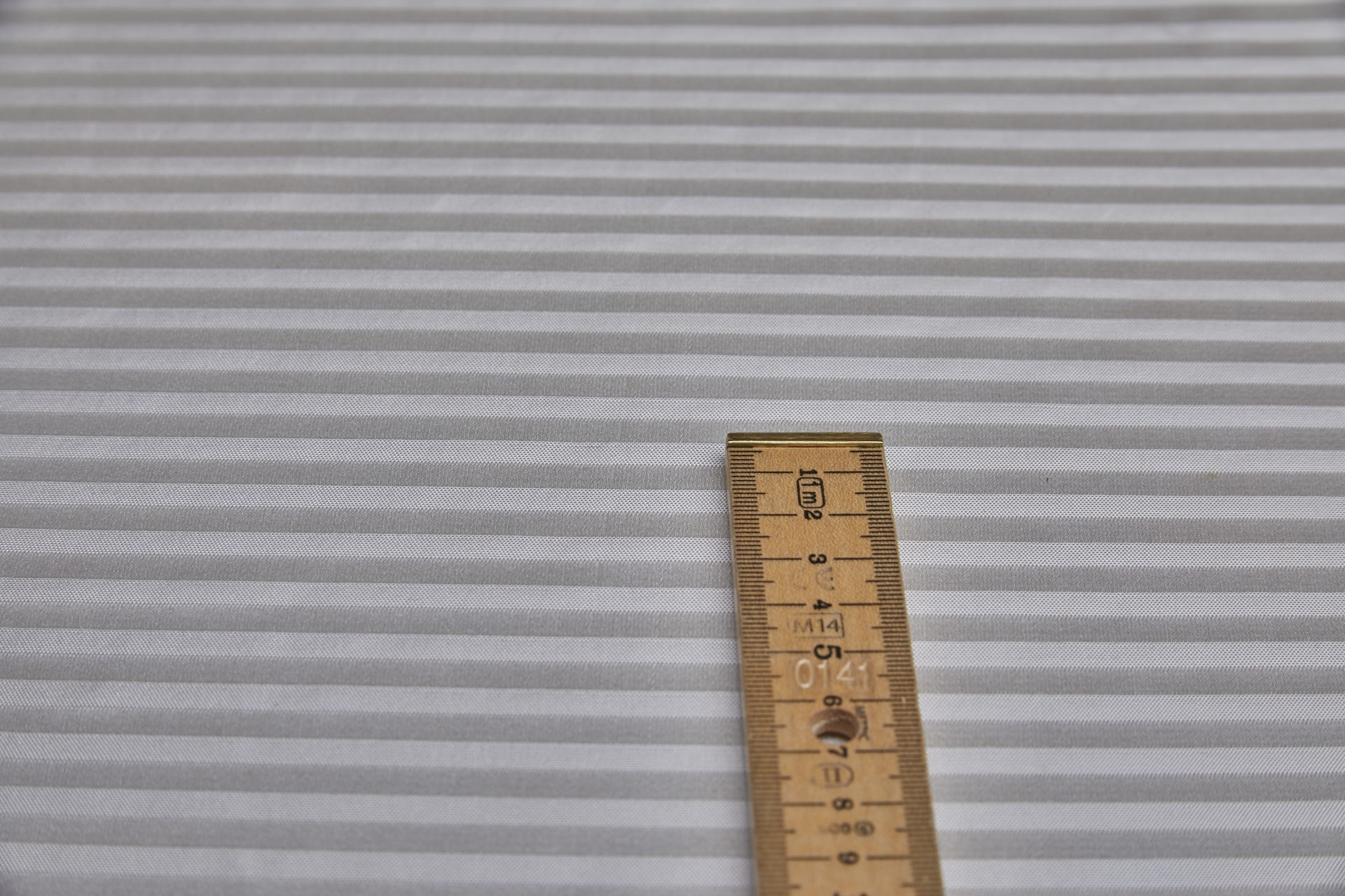 Beautifully simple, this woven stripe brocade has alternating matte and shiny stripes of about 6-8mm running from selvedge to selvedge.