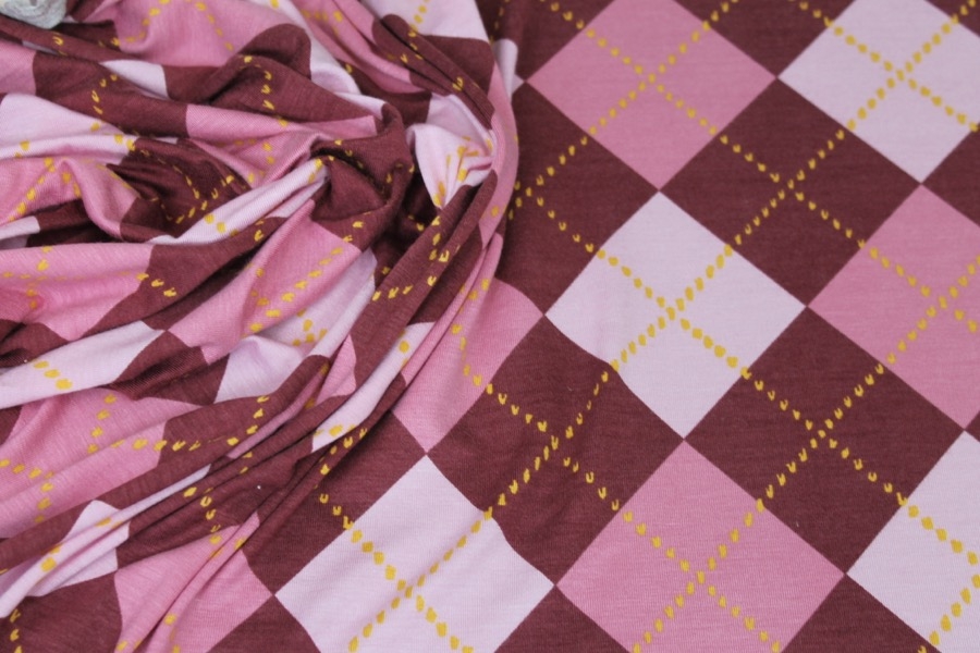 This is a soft cotton mix jersey with a woven stripe in magenta pink and white, the stripes are about 1.5 centimetre wide and run from selvedge to selvedge.