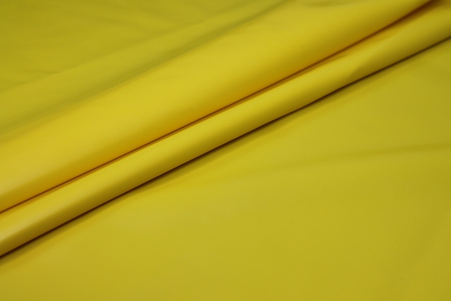 Yellow semi transparent PVC look material, semi-sheer plastic type fabric, made of polyurethane, non-woven and thermoplastic. 130cm wide.